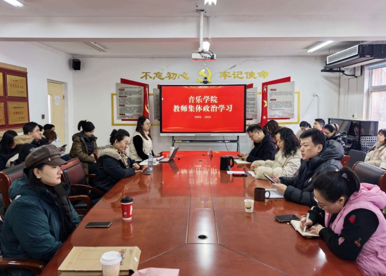 活动中,阴小建带领师生深入学习习近平主席2026年新年贺词,解读“十四五”辉煌成就与“十五五”发展蓝图,结合学院专业特色,强调要以习近平主席2026年新年贺词精神为指引,推动音乐与科技融合、传承中华优秀传统文化。随后,传达廉洁从教、师德师风规范和安全培训相关要求,明确假期严禁有偿补课、违规收礼等纪律要求,提醒教师做好人身财产与消防安全防护。最后,组织学习在职教师读博管理及教师考勤两个最新文件,规范教师个人发展与日常管理。