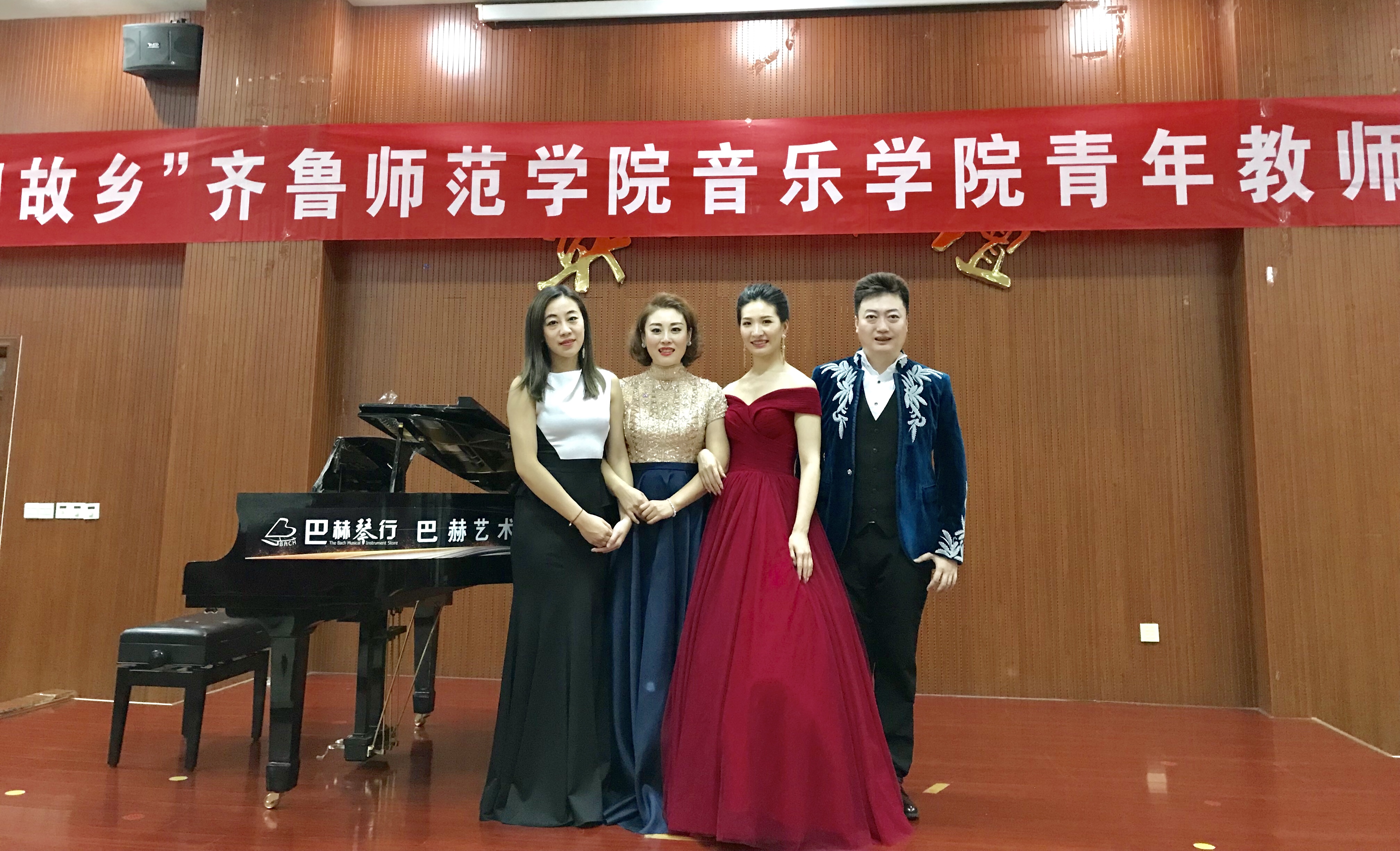 6月11日19时,永利y23455青年教师刘爽、张智、刘蕊蕊、张晓蕾在淄博师范高等专科学校奂山书院厅成功举办“艺回故乡”声乐专场音乐会。淄博师专学前教育学院党委副书记赵瑜、副院长崔俊涛、教育系音乐教研室主任程德祥及学前教育学院和艺术教育系的师生参加了此次音乐会。