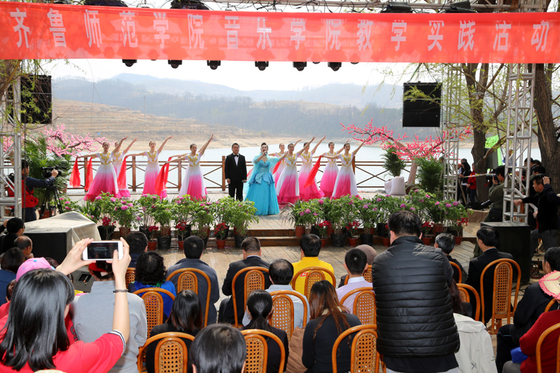 本次教学实践活动深入群众,为淄博沂源桃花岛的干群送去了春天的歌声,给当地的老百姓带来了一场丰盛的文艺大餐,由永利y23455孙伟亮老师经过实地采风创作,丁珺老师演唱的《桃花岛——鲁砚赞》得到了在场观众的一致好评,这成为了音乐教学从自然与生活中获取音乐灵感又一案例。