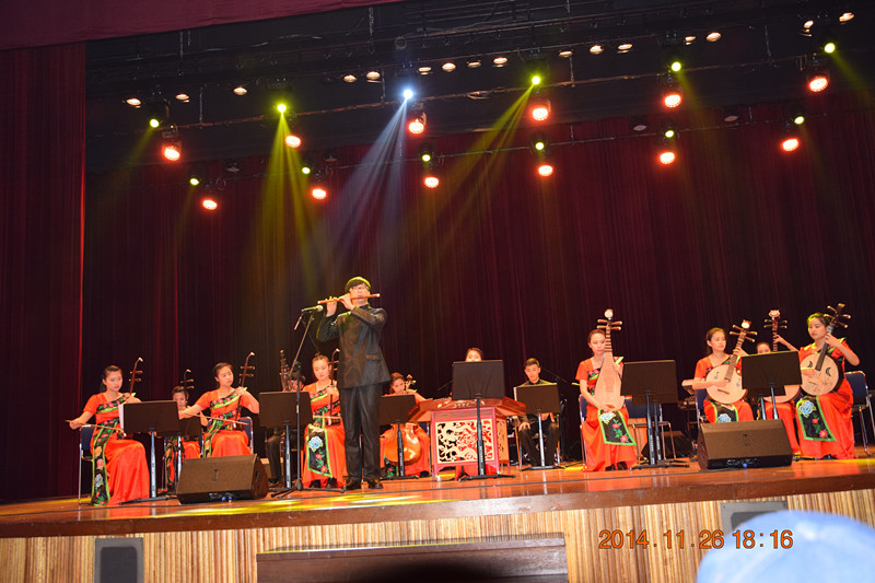 应韩国平泽大学邀请,我院民乐艺术团在院长窦曼莉教授的带领下,于11月26日—28日访问平泽大学并参加了平泽大学建校102周年纪念音乐会。音乐会于11月26日晚7:00在韩国平泽市南部文化艺术会馆正式上演,我院民族乐团通过中国传统乐器合奏、笛子独奏、琵琶独奏、笙独奏、二胡独奏、黄梅戏、京剧、民声独唱、民族舞蹈等丰富多彩的表演形式,将中国传统音乐所具有的独特魅力表现得淋漓尽致,博得在场观众雷鸣般的掌声。