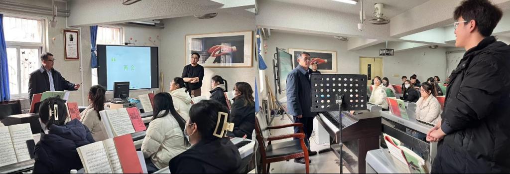 刘源老师通过简单的几个概念让学生们对钢琴演奏技巧有了深刻的把握,通过课堂实践以及随堂练习,使同学们对《山村新曲》这首音乐作品有了全新且更深入的了解。随后,以刘振光老师代表的各位专家对本节课给予了高度评价。在提出实践性建议的同时,刘振光老师还和学生深入交流,并强调:作为师范生,在不断加强自身专业素质的同时,更要将音乐中的美传播出去。学海无涯,各位老师鼓励在座的同学们要学有所用,在学习的过程中悟出对音乐生涯有裨益的人生道理,为成为一名优秀的人民教师而不断奋斗。