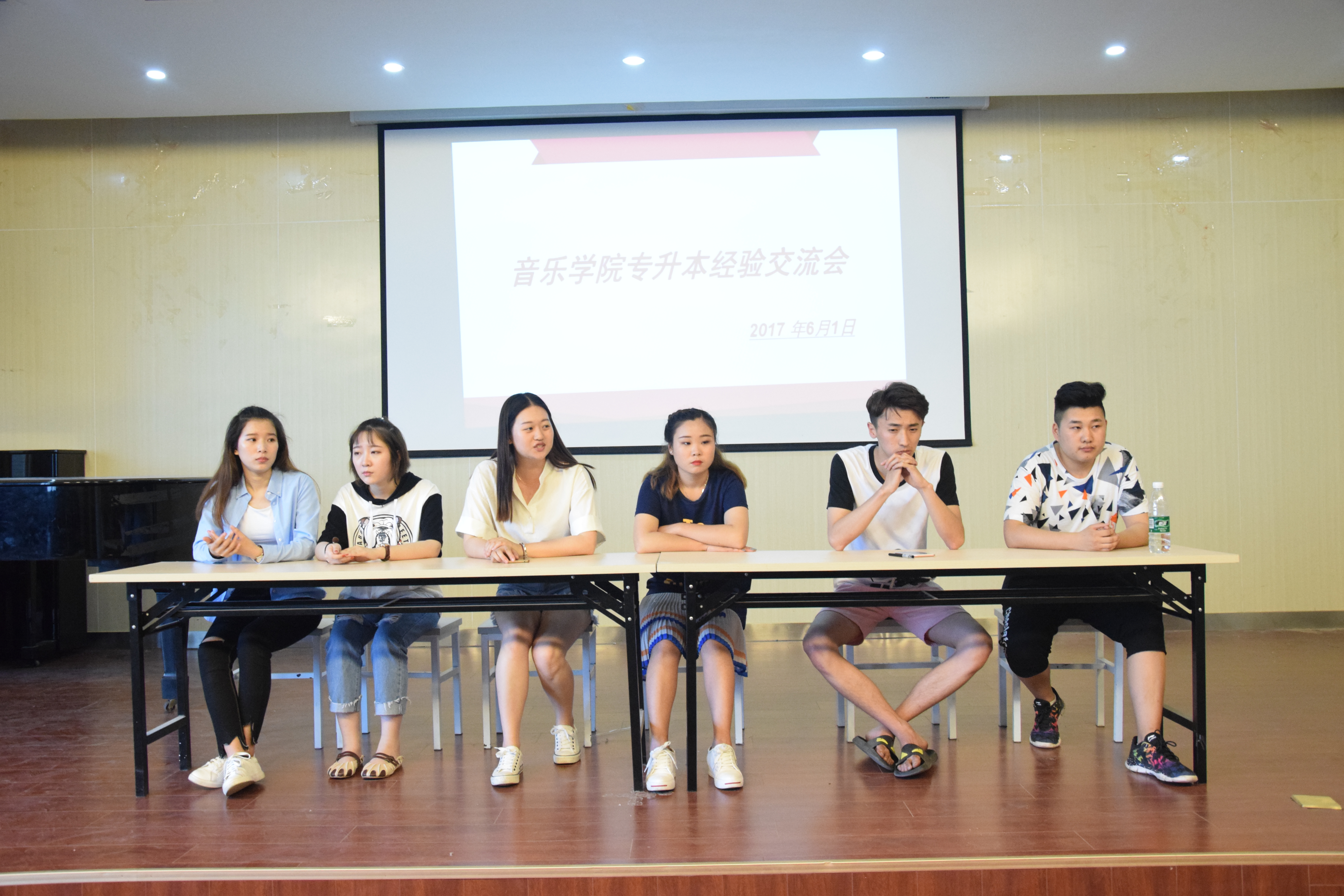 2017年山东省“专升本”考试录取工作已结束。我院创下了历年专升本的最好成绩。本次2014级专科“专升本”考试有37名学生被本科院校录取,其中泰山学院15人,济宁学院8人,枣庄学院14人。为让我院学子更好地了解关于专升本方面的知识并为以后顺利专升本做好铺垫,2017年6月1日,永利y23455在音乐厅举办专升本经验交流会。邀请了我院2014级考入枣庄学院、济宁学院和泰山学院的宋帅林、岳一凡、林益青、李晟、杨露、李壮六位同学为大家做专升本的经验交流,交流会由辅导员王海波老师主持。
