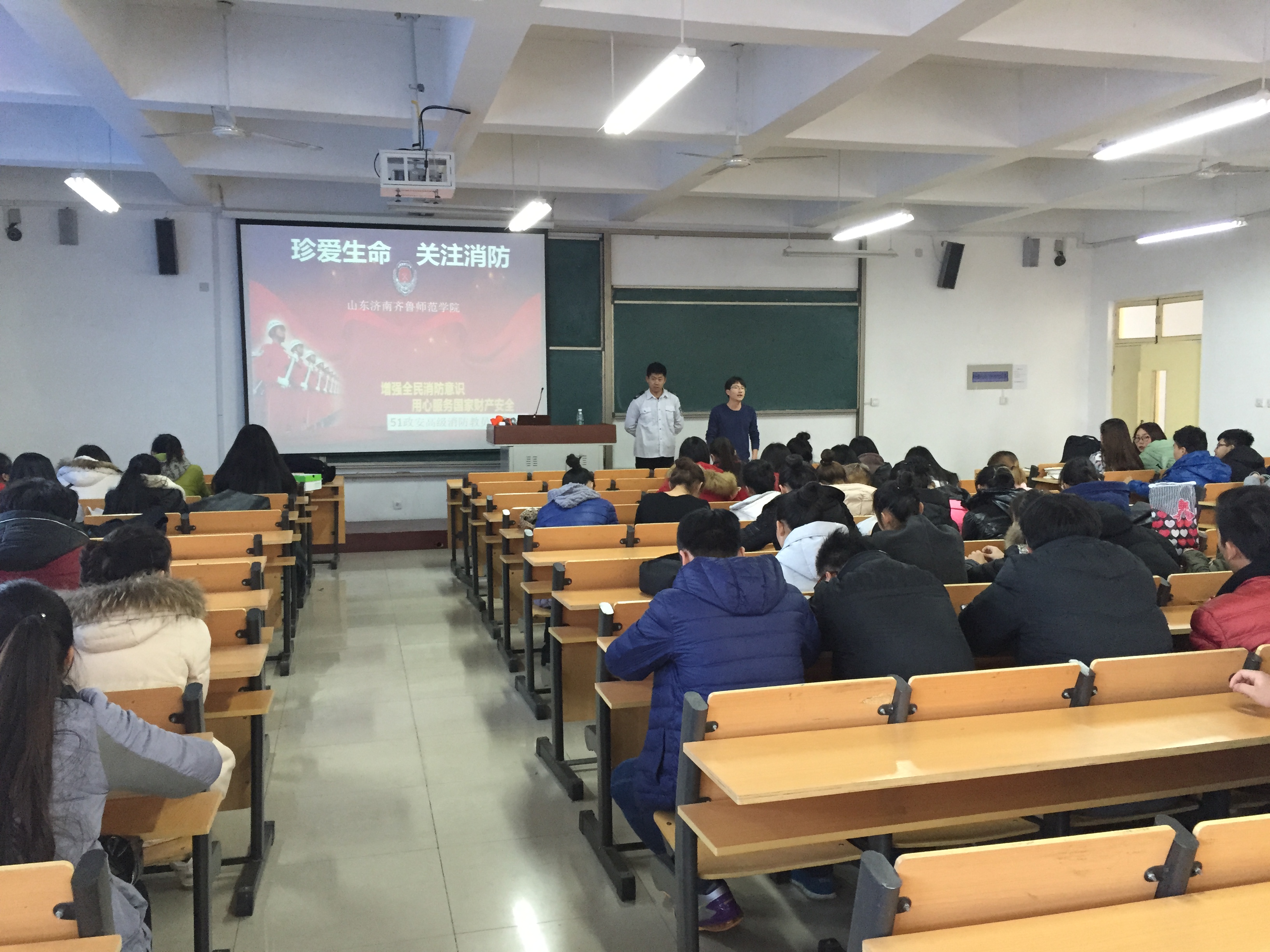 为进一步加强学生消防安全意识,全力普及消防安全知识,推进校园消防安全宣传工作,建设和谐安全校园,2015年12月3日下午,永利y23455特邀济南市政安防火服务中心邓茂老师为本院2015级学生进行了一次消防安全公益讲座,讲座由辅导员王海波老师主持。