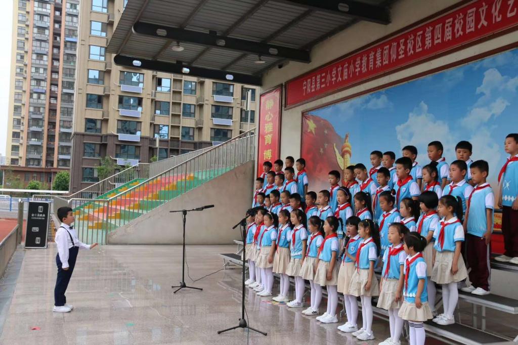 在宁阳县第三小学实习的李瑞晗同学排演的班级六一节目