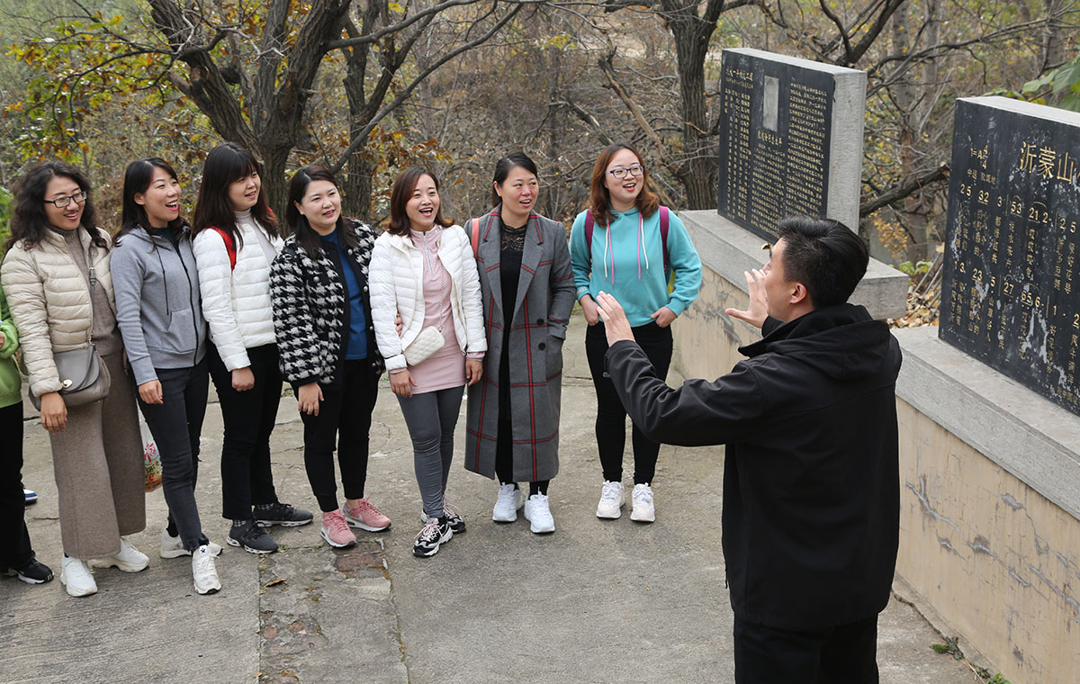 在孟良崮战役纪念馆,团队成员听取了陈毅、粟裕等老一辈革命家的故事和烈士事迹的讲解,观看了珍贵的历史图片资料,深刻领会了在艰苦的条件下,革命先辈们崇高的革命精神和老区人民的无私的奉献精神,更深刻认识了“兵民乃胜利之本”“人民,只有人民,才是创造世界历史的动力”的内涵。在沂南县马牧池红色教育基地,老师们听取了“沂蒙红嫂”送子参军、送夫支前,缝军衣、做军鞋、抬担架、推小车,舍生忘死救伤员,不遗余力抚养革命后代的故事,深刻领会了“最后一口粮当军粮,最后一块布做军装,最后一个儿子送战场”为核心内容的红嫂精神。明德英、王换于等模范人物的感人故事让老师们久久不能平静,谱写了一曲曲军民鱼水情。