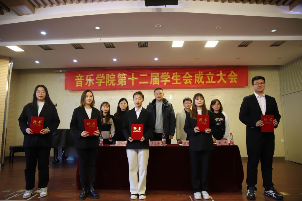 随后,与会老师向第十二届学生会主席团成员、各部部门负责人颁发了聘书。