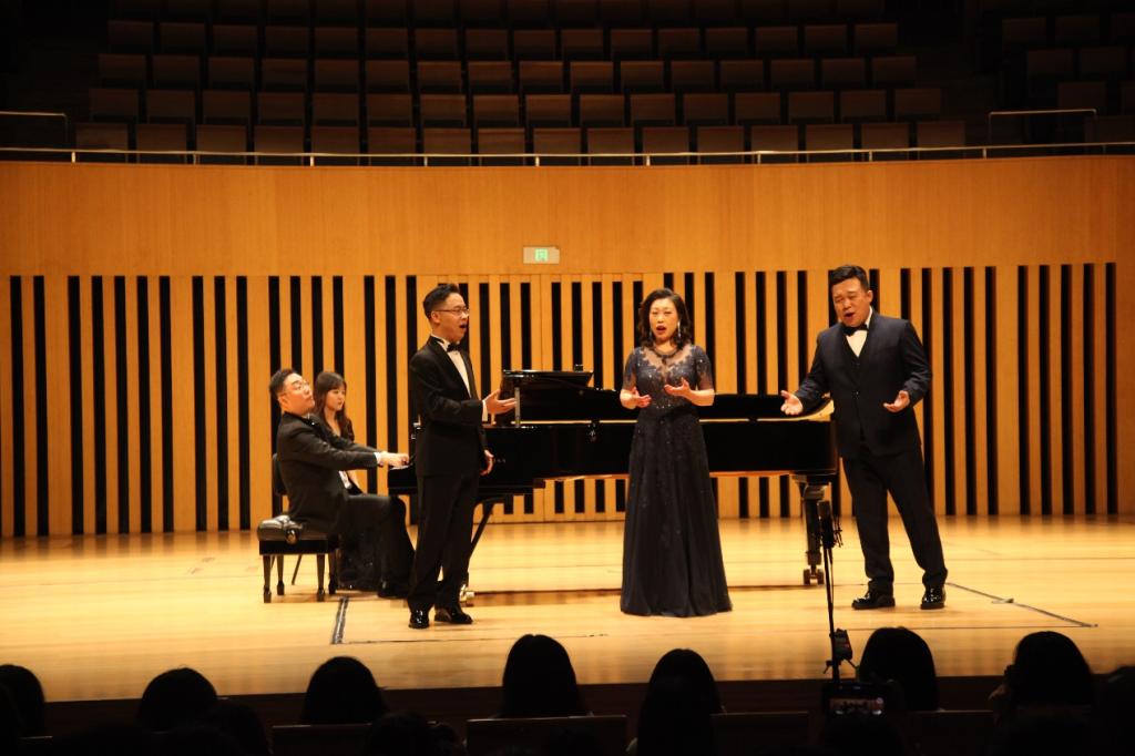 本场音乐会共二十余首作品,涵盖中、韩、德、意、英五种语言,横跨巴洛克、古典、浪漫、近现代等几个音乐时期,有清唱剧、艺术歌曲、歌剧咏叹调、重唱等多种体裁。徐定兴用他高超的技巧和细腻到位的音乐征服了全场观众。万丹、李鳌两位著名歌唱家的助阵,更是博得了在场观众的阵阵掌声。我校永利y23455钢琴教研室主任、合作钢琴家刘源副教授担任全场的钢琴伴奏。音乐会获得了圆满成功。