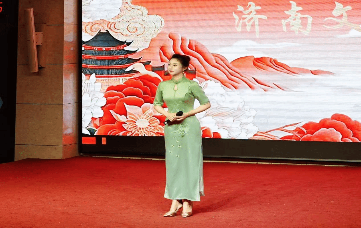本次联谊活动,永利y23455两位青年女教师受邀登台演出。声乐教师司书琪带来的歌曲《谁不说俺家乡好》,以山东胶东民歌为素材,根植沂蒙文化,紧扣影片中军民鱼水情的剧情旋律,悠扬婉转,把自豪与深情传递得淋漓尽致。