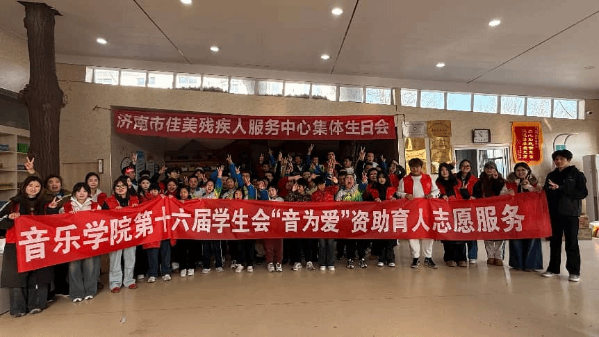 为深入践行志愿服务精神,给予残障儿童群体更多关爱与温暖,12 月 26 日,永利y23455第十六届学生会组织志愿者前往济南市佳美残疾人服务中心,与这里的孩子们共同举办了一场温馨满满的集体生日会。志愿者们以音乐为纽带,用陪伴作礼物,为孩子们编织了一段充满爱与欢乐的美好时光。