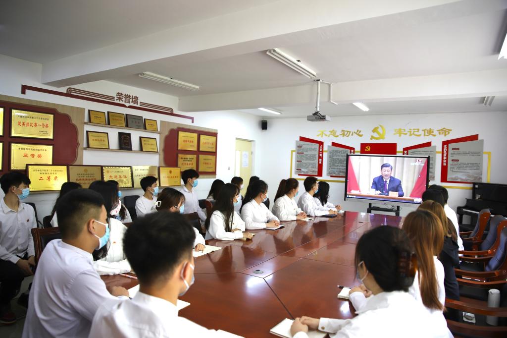 青年教师曲明昊说,习近平总书记的重要讲话,让我深深体会到了青年在民族振兴、国家富强、社会进步中的重要作用,也让我觉得在中国百年未有之大变局下为中华民族伟大复兴贡献力量的激动、骄傲和责任。作为一名高校青年教师,工作和生活中充满了形形色色18-24岁的中国青年,我更应该在平时的工作生活中坚定共产主义理想信念,起到表率作用的同时,用共产党人的初心使命感召青年,用党的光辉旗帜指引青年,用党的优良作风塑造青年。