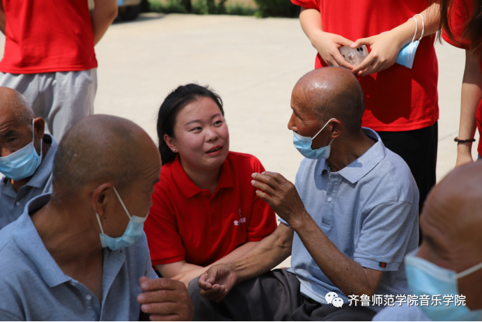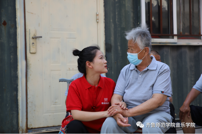 歌舞过后,队员们与敬老院的老人们进行了沟通交流,热情询问了老人们的生活情况和身体健康状况,用自己的方式表达关爱。在与老人们进行亲密互动的同时,也为他们带来了青春的蓬勃朝气,场面其乐融融。