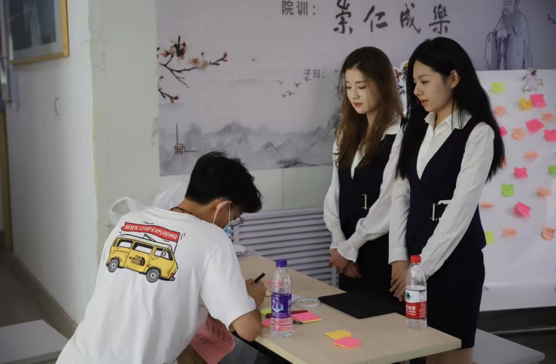 情抒我心,执笔表白。为架起师生之间的心桥,音院学子在学院门厅立起表白板。同学们纷纷驻足,留下对老师们的节日祝福。展板上,丰富多彩的画笔、文采飞扬的文字、有心有爱的祝福,洋溢着学生对老师的感恩,烘托着温馨又感动的场面。