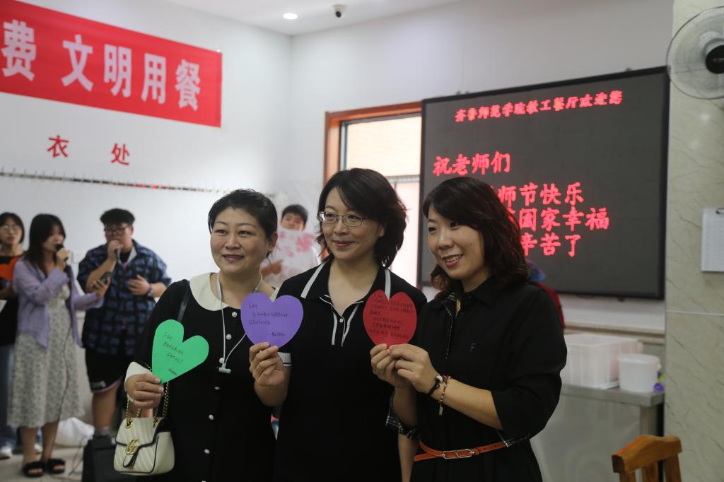 感谢师恩,歌曲献上。音院学子带着歌声和祝福,汇聚在教职工餐厅,用歌声传递对老师“化作春泥更护花”的感恩,用贺卡表达对老师“传道授业解惑”的敬意,通过声声祝福,献上对老师“春蚕到死丝方尽”的崇敬。