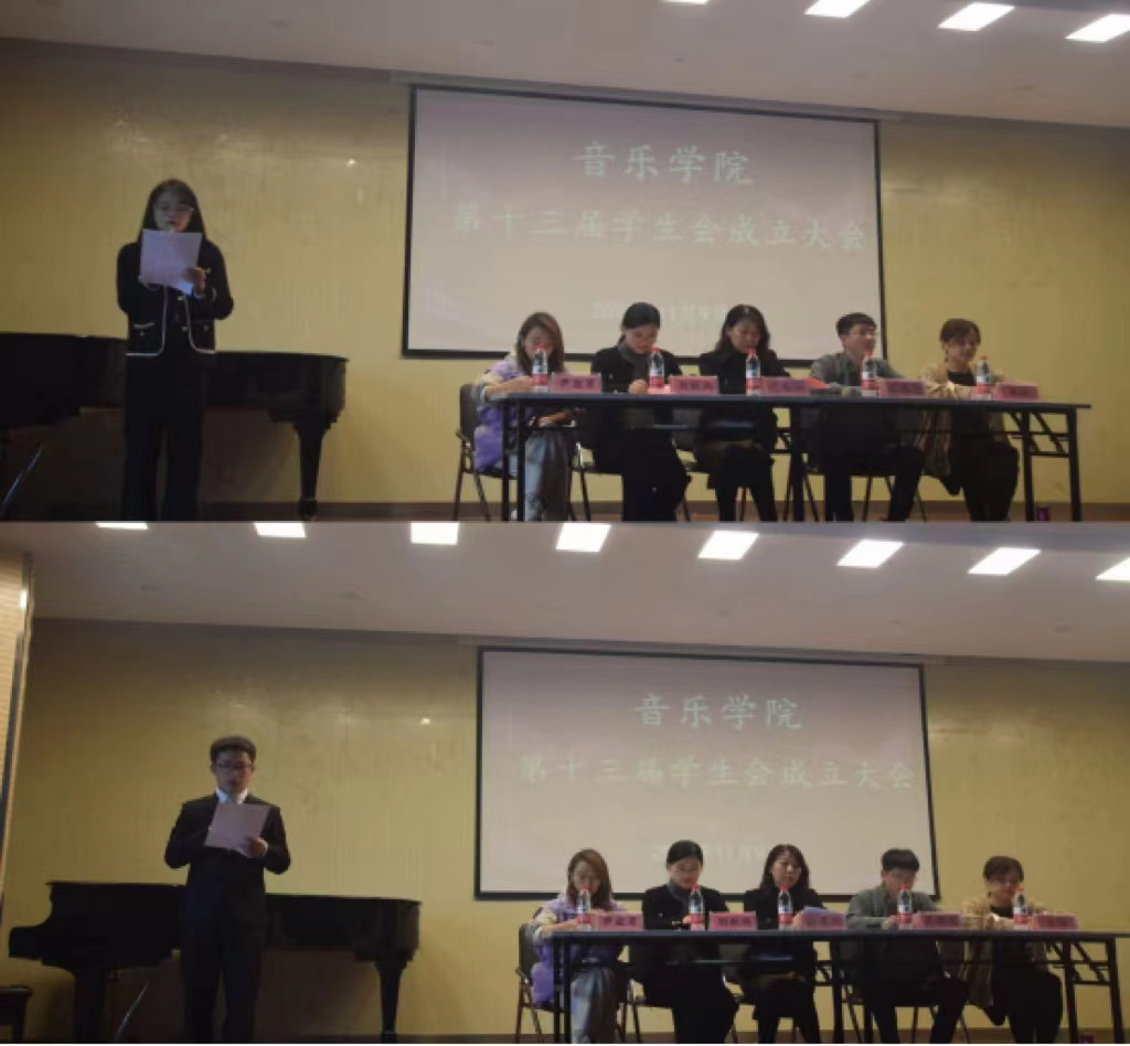 大会在庄严的国歌中正式开始。根据会议议程,刘秋雨宣布新一届学生会成员名单,第十二届学生会主席李明哲代表上届学生会做总结报告,第十三届学生会主席赵恩玉代表新一届学生会做表态发言并宣布本届学生会工作计划,与会老师向第十三届学生会主席团成员及各部长颁发了聘书。