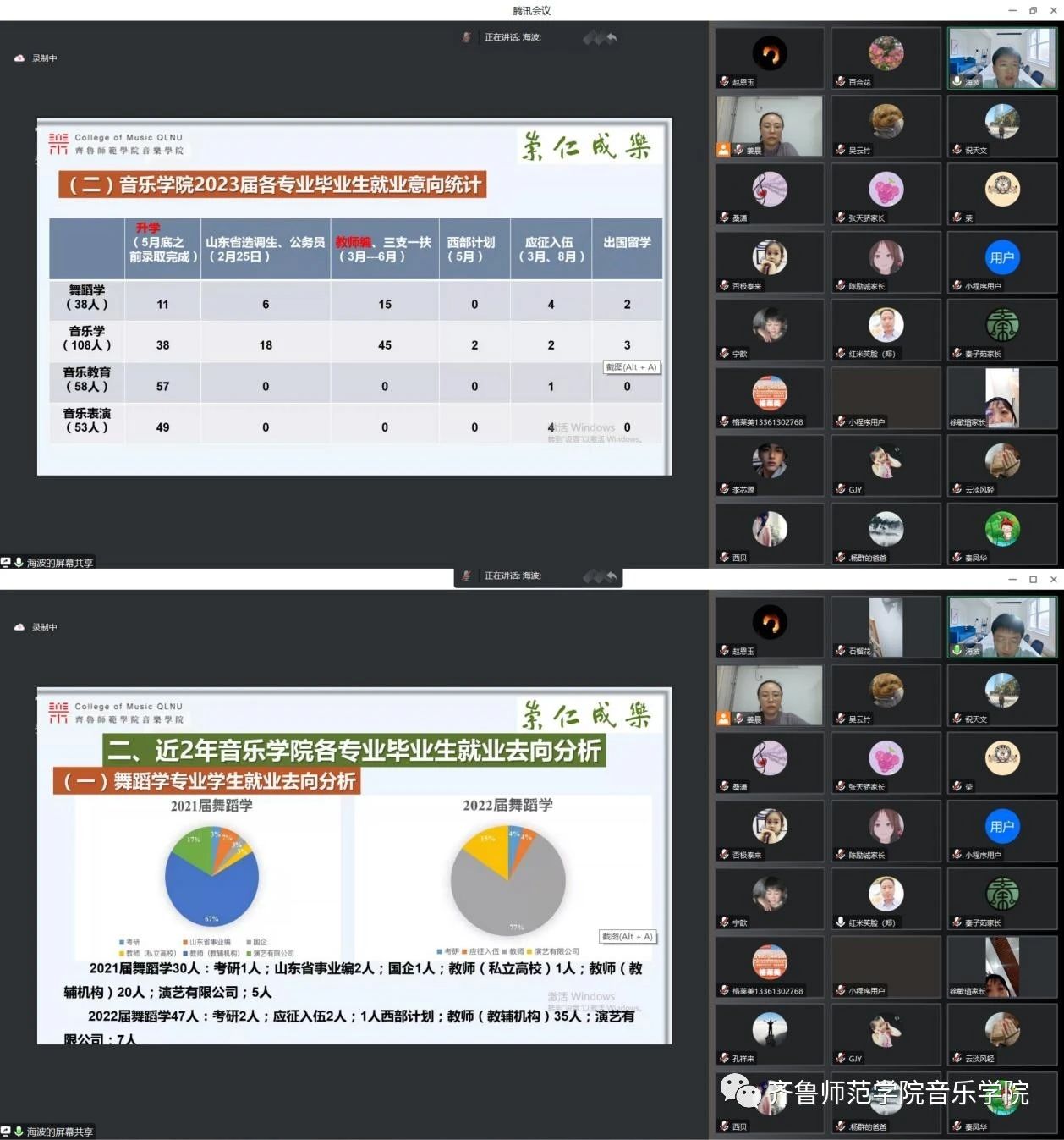 桑潇围绕学院师范类专业毕业生教师资格证考试、教师编报考、升学指导、就业实习、音乐会及毕业论文答辩等方面进行了解读。