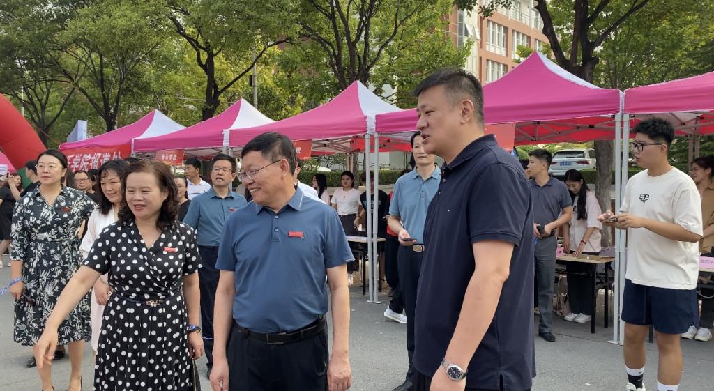 烈日阳光下,学校领导走进年轻的海洋,带来暖“新”慰问,为萌新们送上欢迎和祝福。