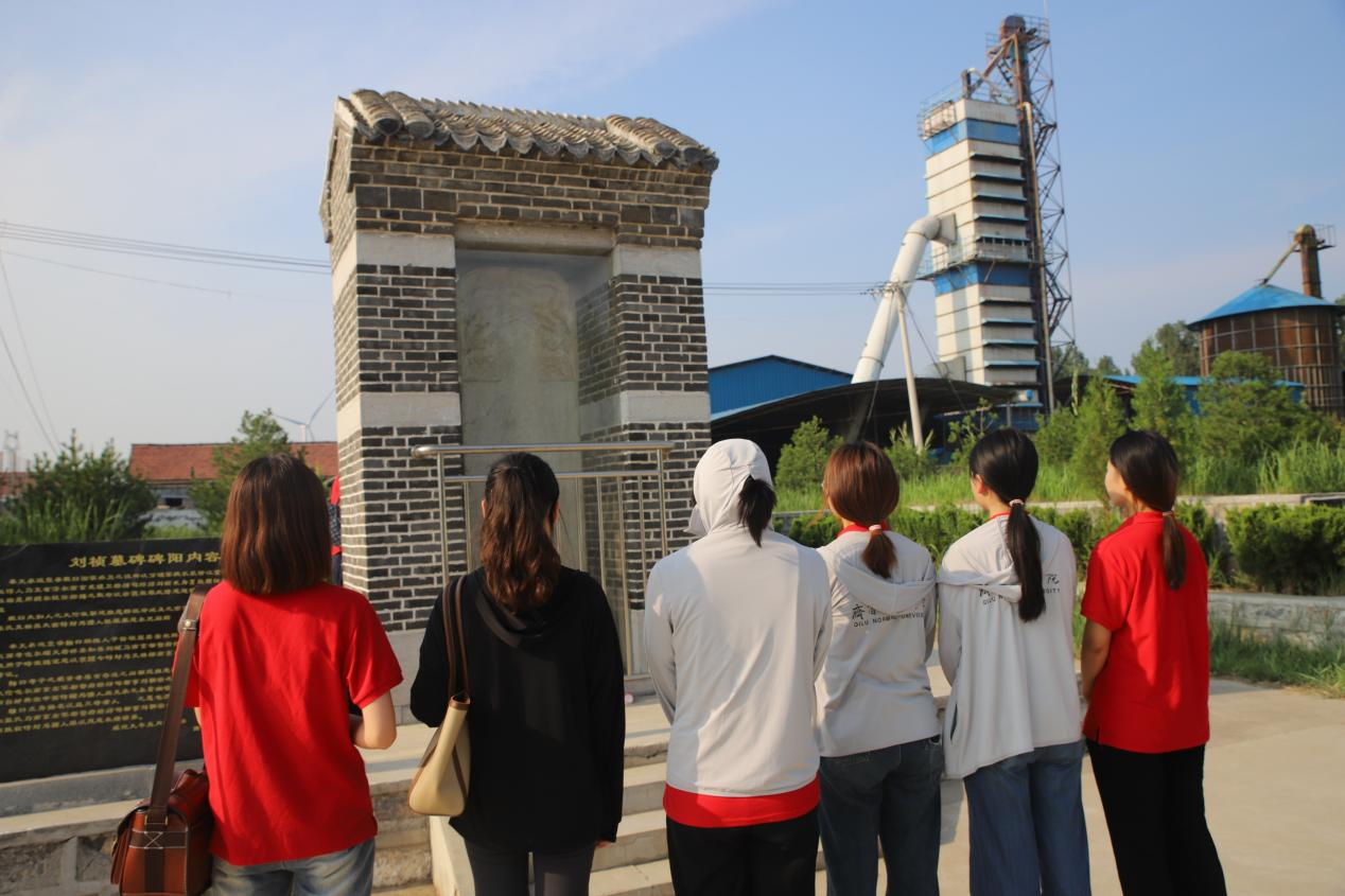 在南大刘村乡村振兴记忆村史馆,服务队队员们了解了该村的历史沿革以及600年来的历史文化、家风家训以及近年来村庄建设取得的发展变化,村英雄保家护院、奋起反抗、英勇抗敌的故事,见证了新农村建设取得的巨大成就,并参观了刘祯墓碑。