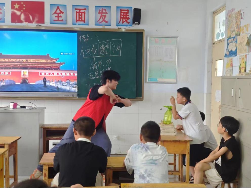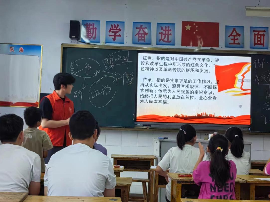 为积极响应暑期“三下乡”志愿服务活动的号召,助力乡村教育发展,引导乡镇小学的孩子们更好地感悟党史,传承英雄精神。7月17日,永利y23455“芸梦”社会实践服务队在文祖小学开设了以“缅先烈,唱中华”为主题的党史教育小课堂。队员们以独特的创意和热情,巧妙地将党史教育与艺术表演相结合,打造党史音舞课堂。