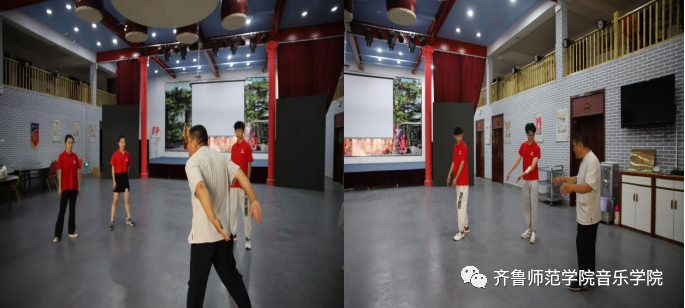 舞蹈专业的队员们跟随李传英老师进行了部分商河鼓子秧歌动作元素的学习与模仿。