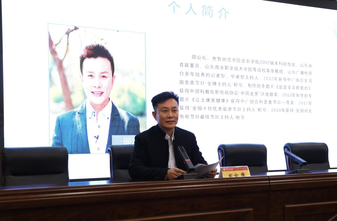 随后1998级杰出校友、山东广播电视台生活农科管理运营中心公共合作部主任邵公礼上台交流。他以自身的奋斗历程与成功经验为例,生动展现了师院学子在各行各业的非凡风采与卓越成就,同时无私分享了服务校友和母校的宝贵经验与建设性建议,为学校与校友间的深度合作提供了新的方向与思路。